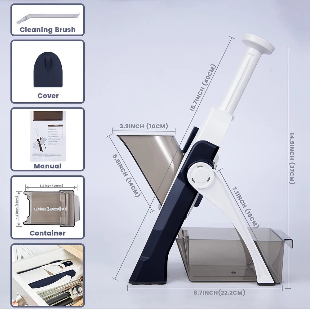 Fatiador mais seguro: Um fatiador seguro para qualquer chef.Lâmina oculta afiada fatia de forma rápida e uniforme, fácil de configurar e limpar, sem necessidade de usar luvas ou trocar as lâminas para usar, é definitivamente um substituto atualizado para sua cozinha diária.
